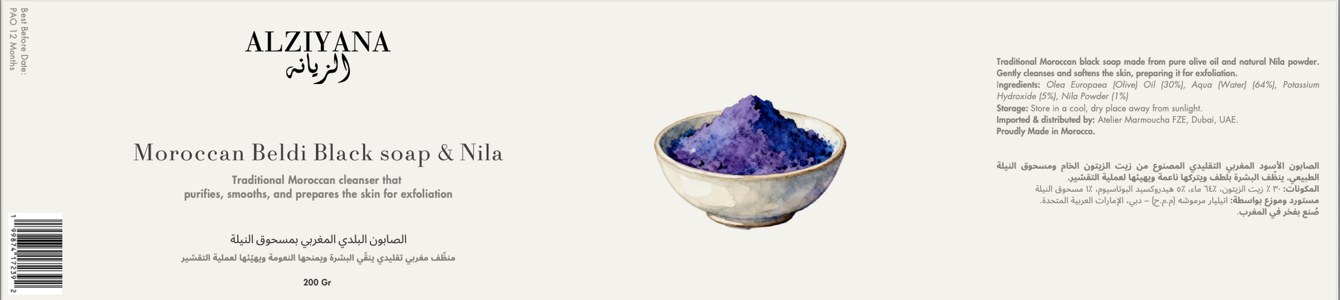 يجمع صابون الزيانة المغربي البلدي الأسود والنيله بين الصابون الأسود الطبيعي الأصيل المستخدم تقليديا في الحمامات المغربية مع النيله ، وهو طين مغذي يعمل على إزالة السموم وتقشير البشرة وتنقيتها.